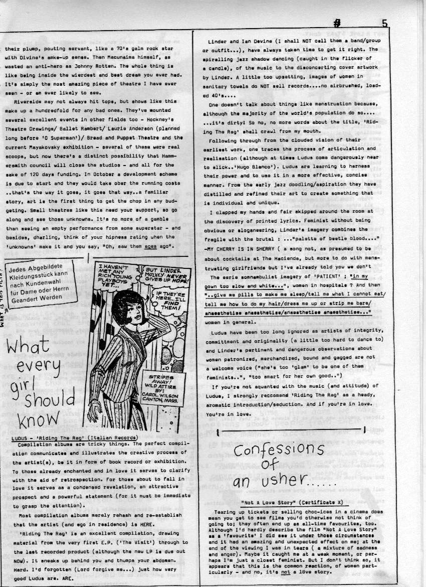 A glowing music review was a rare event in City Fun, revealing the close affinity between Ludus and the fanzine.