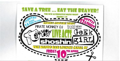 This is the very first flyer designed by Louise Cowley (who also DJ'ed the events as Pirate Monkey) for my first clubnight - Eager Beaver (Formerly Save A Tree....Eat The Beaver). An idea by Vicky Jones, General Manager at Manto which was to offer something different instead of the usual pop and dance being played throughout Canal Street. Launched in April 2009, on an unsuspecting dance crowd at Manto, Eager Beaver, I'm proud to say was the first and only weekly indie/alternative/electropop and rock night for women based on Canal Street and ran for a year upstairs in Manto's Lounge, despite the venue being known for dance music.