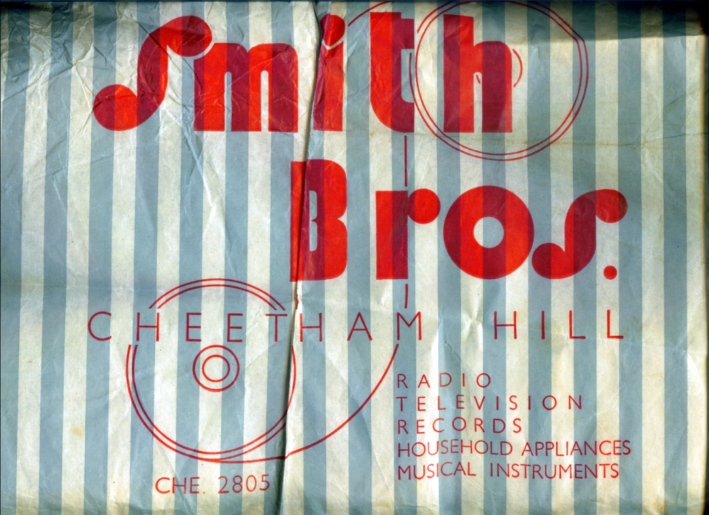 One of a number of 1970s record shop bags donated to the Archive by Ashley Kennerley.