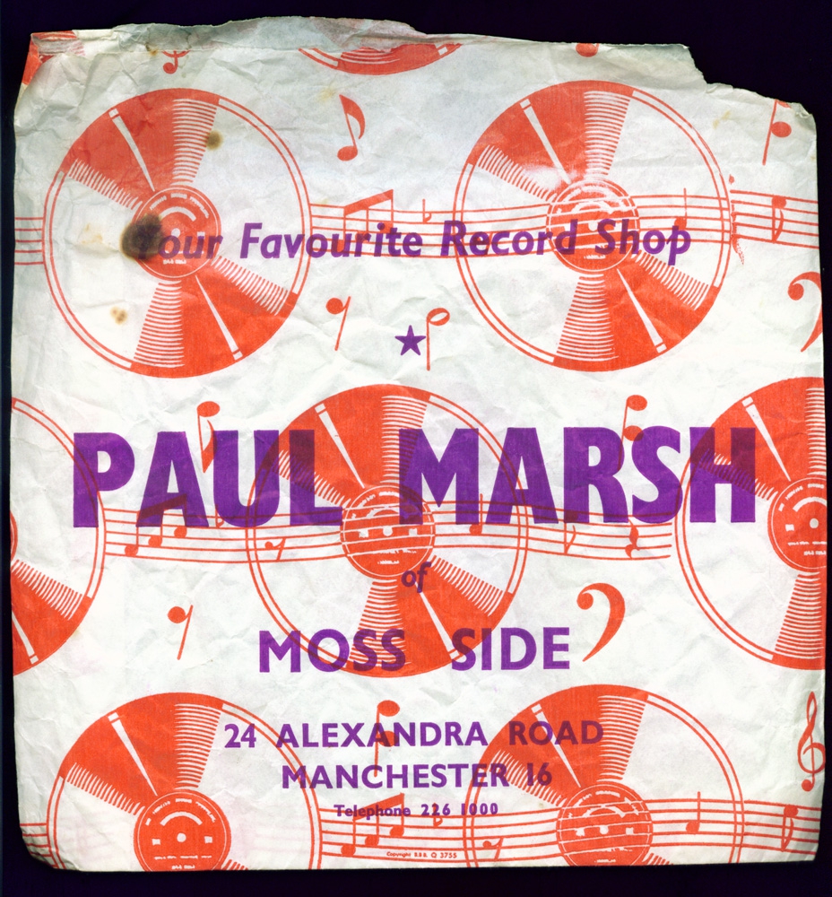 One of a number of 1970s record shop bags donated to the Archive by Ashley Kennerley.