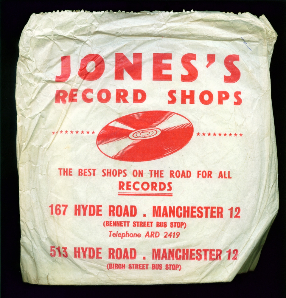 One of a number of 1970s record shop bags donated to the Archive by Ashley Kennerley.