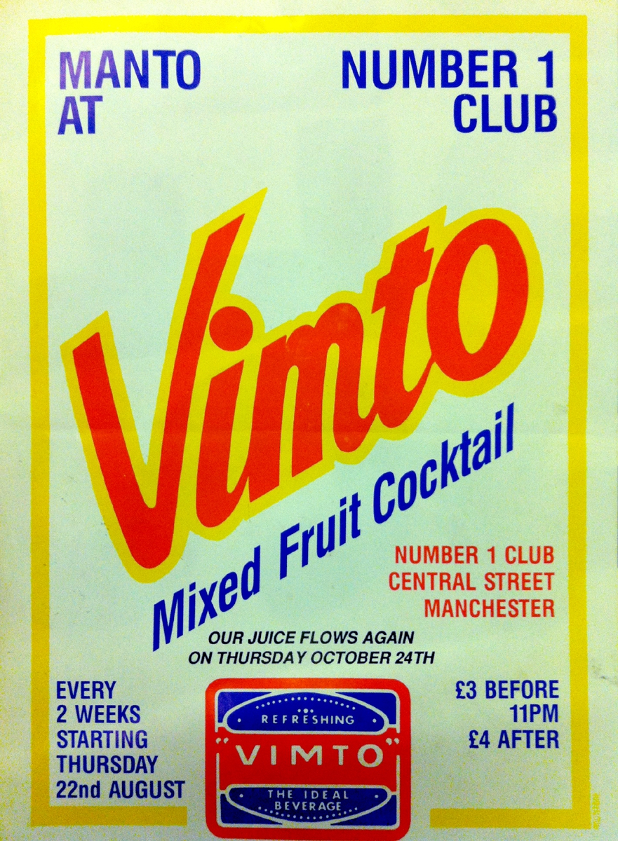 A flyer advertising a co-promoted Manto and Number 1 Club night called Vimto. I think this was before the Saturday night 'Spunk' relaunch.