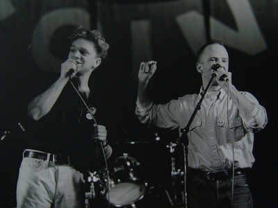 Andy Bell and Jimmy Somerville perform at 'Never Going Underground', after Manchester's legendary anti-Section 28 rally.