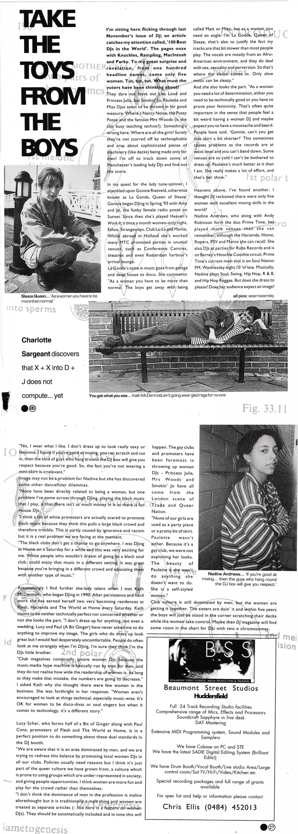 A press article on women DJs from June 1994 taken from Pulp, which was Manchester Polytechnic's student magazine.