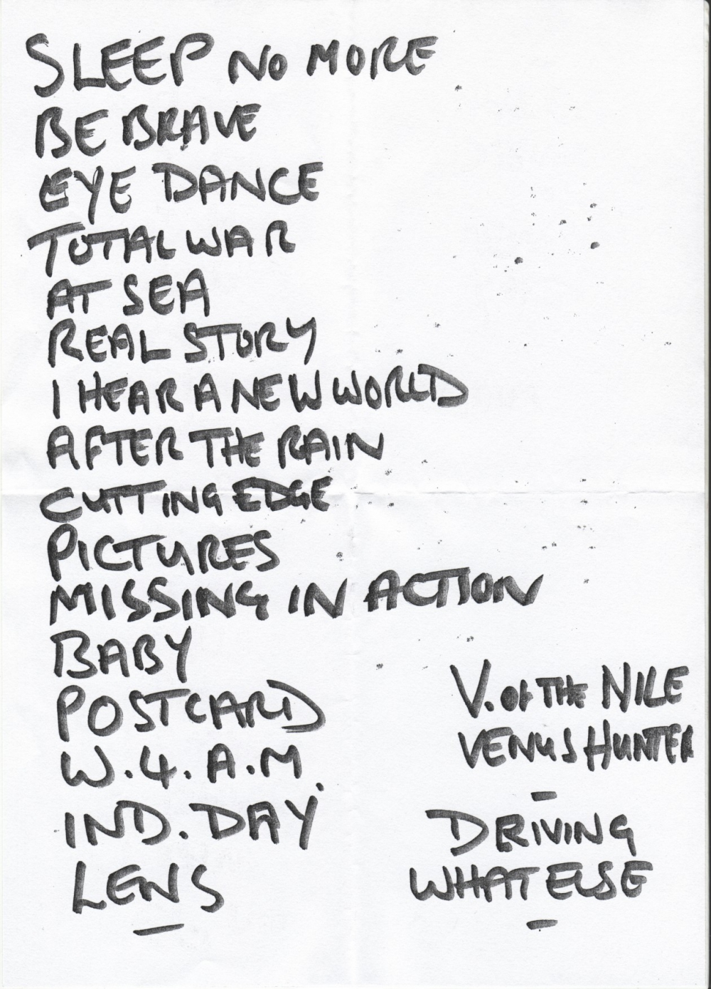Setlist for the Comsat Angels, 23rd October 2009 - see flyer for full story.