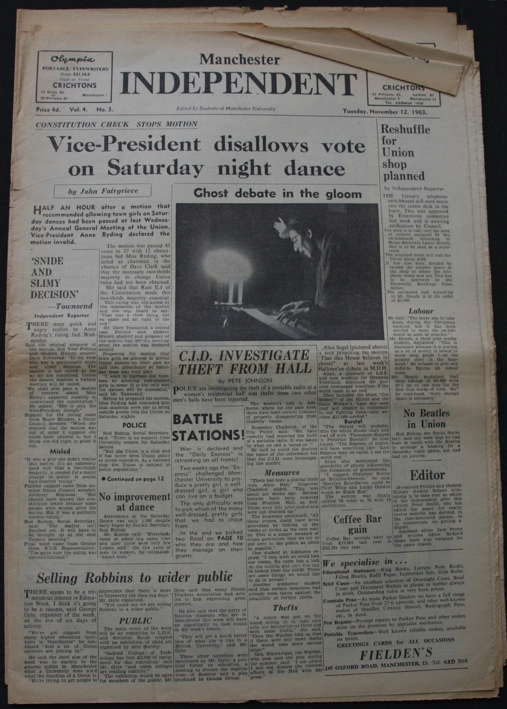 With thanks to James Peters at the University of Manchester Archives and Ben Ward at University of Manchester Students' Union.