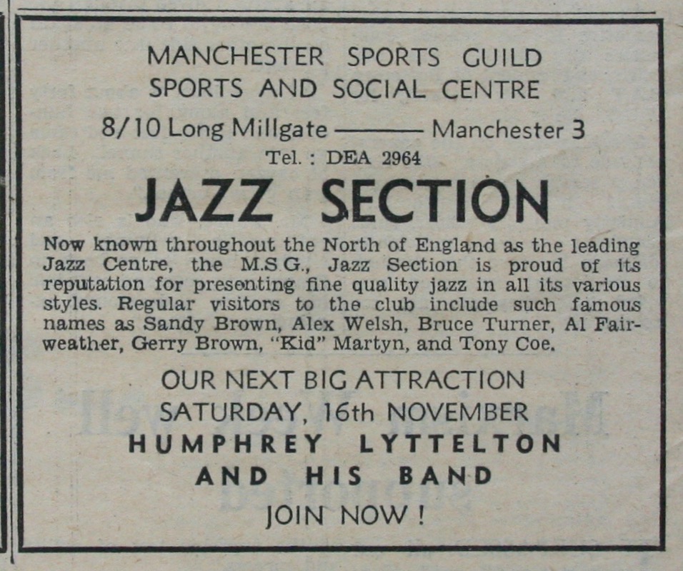 There is also an advert in the Independent for Lyttelton playing in at the Sports Guild Sports & Social Centre, Long Millgate, on 16 November 1963.