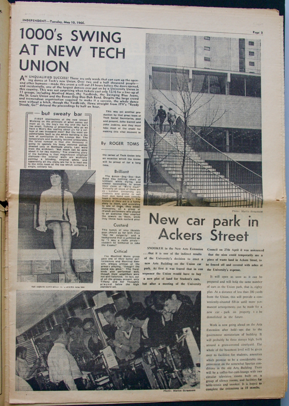 A great piece by Roger Toms on the opening of the new 'Tech Union' (the Barnes Wallis building at UMIST), 1966.