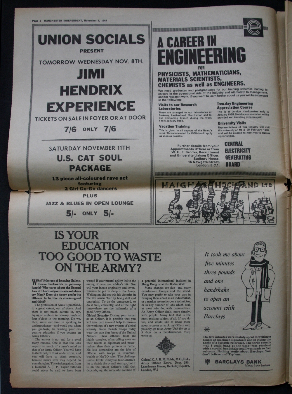 Taken from the Manchester Independent newspaper, written and edited by University of Manchester students. With thanks to James Peters at the University of Manchester Archives and Ben Ward at University of Manchester Students' Union.