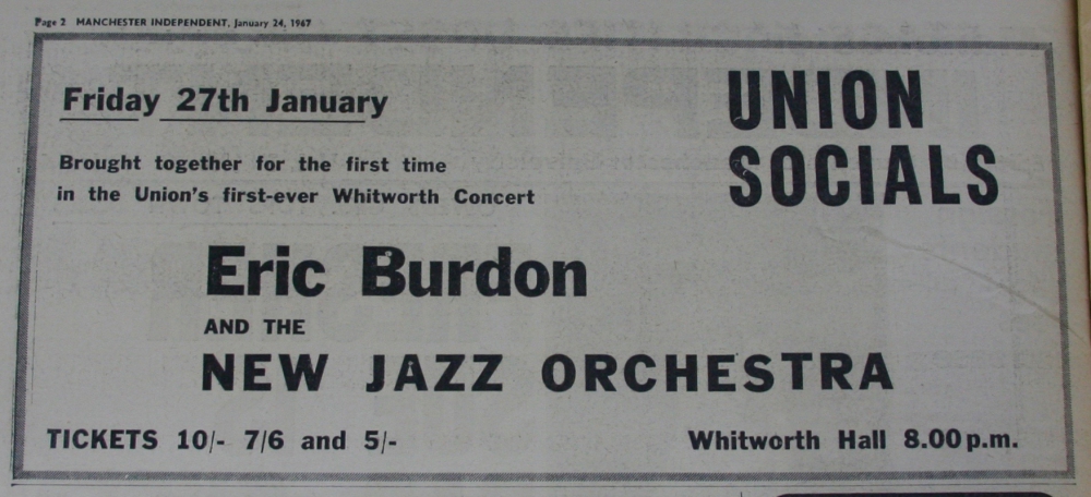 A new venture for both Eric Burdon and the Union, this was the first ever gig at the Whitworth Hall - one of the University's grandest buildings.