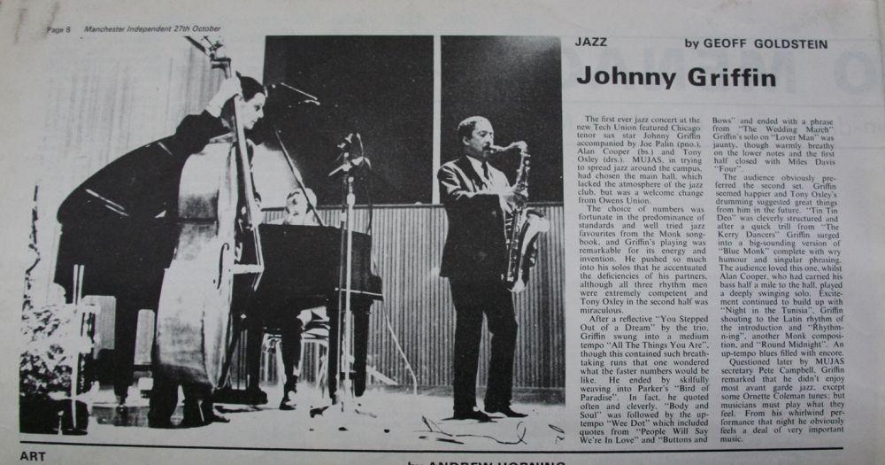 A review of the first ever jazz gig at the Tech Union (Barnes Wallis Building), which was by Johnny Griffin - an acclaimed hard bop saxophonist.