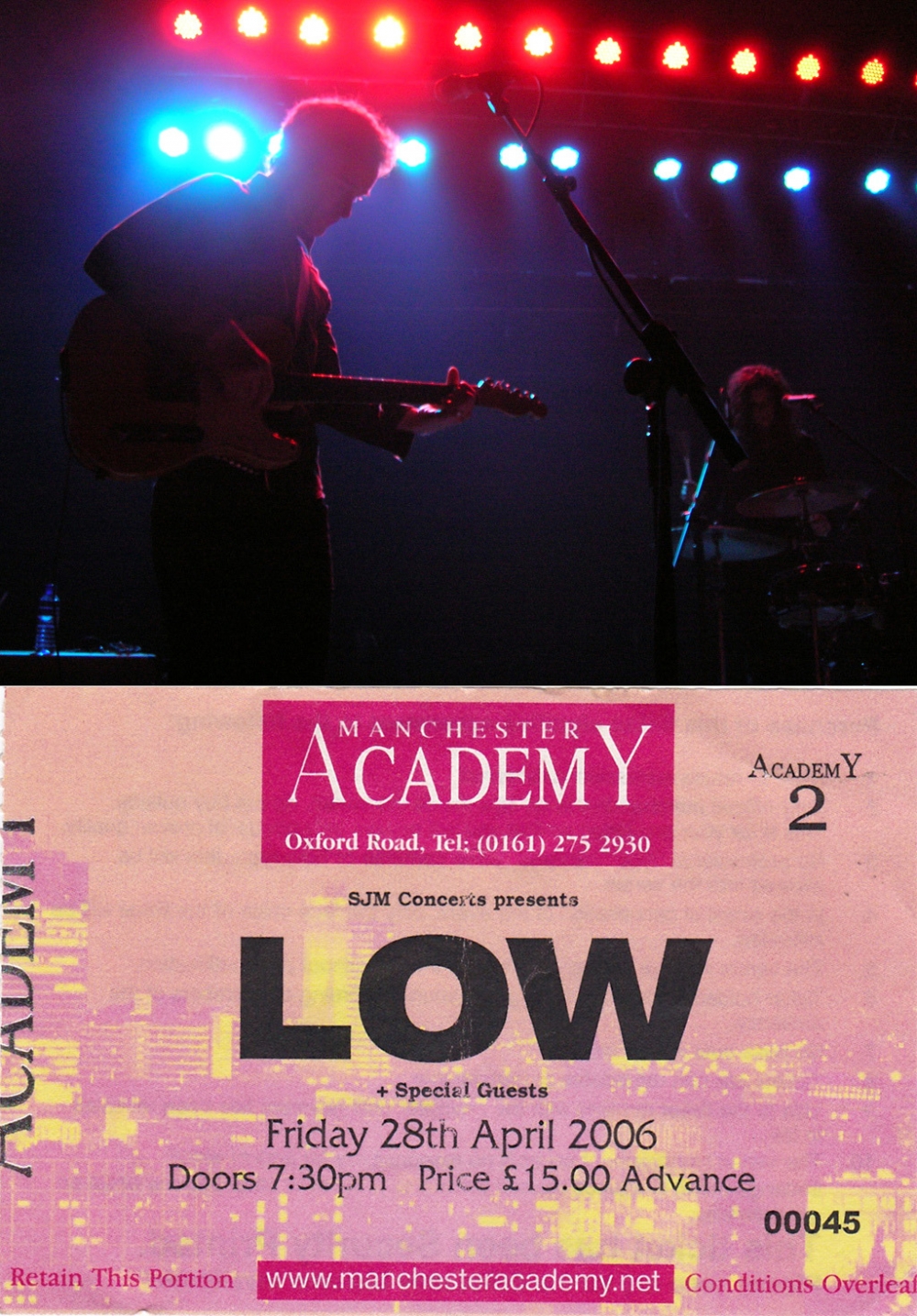 This tour was Low's first visit to the UK following Alan Sparhawk's breakdown in 2005. He was totally on form at Academy 2. A magnetic, brooding presence. The gig was potent. I loved the whole sound, but Alan's Telecaster was the big draw for me: poky and malevolent one minute (Monkey), pealing and celestial the next (On the Edge Of)