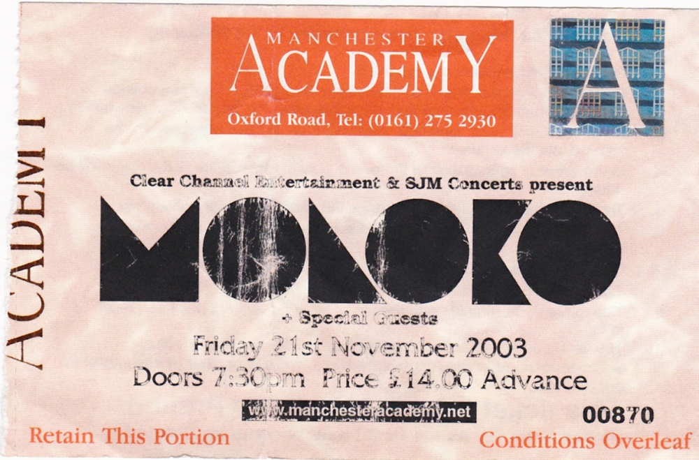 I first bought tickets to see Moloko in 1995. The gig was at Sankeys Soap - a place Id never heard of in Manchester. I couldnt make it at the last minute and a bit of a teenage tantrum ensued.