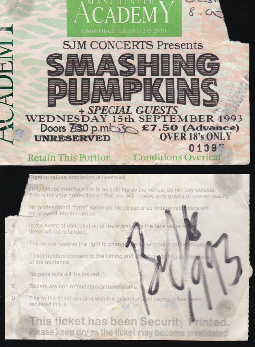 As I recall, one of the lads then gave us his ticket (pictured), which has been signed by Billy Corgan. It felt like a magical night.