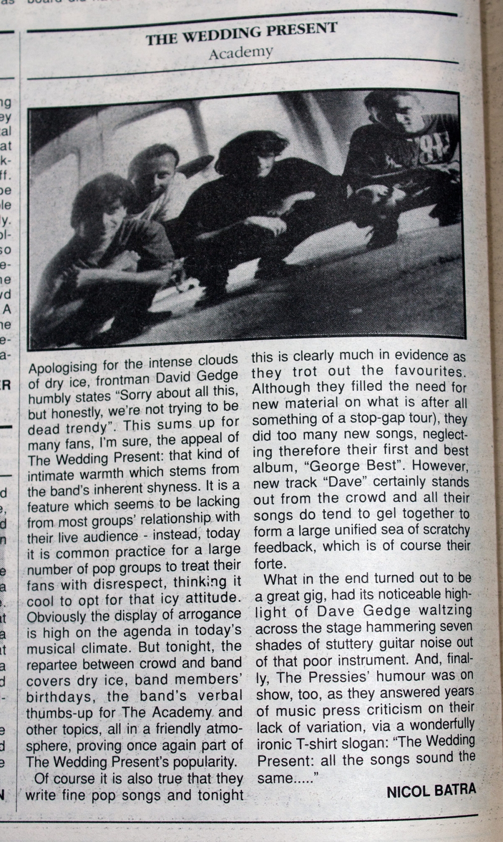 Review of Middleton-born David Gedge and his band of indie janglers The Wedding Present.