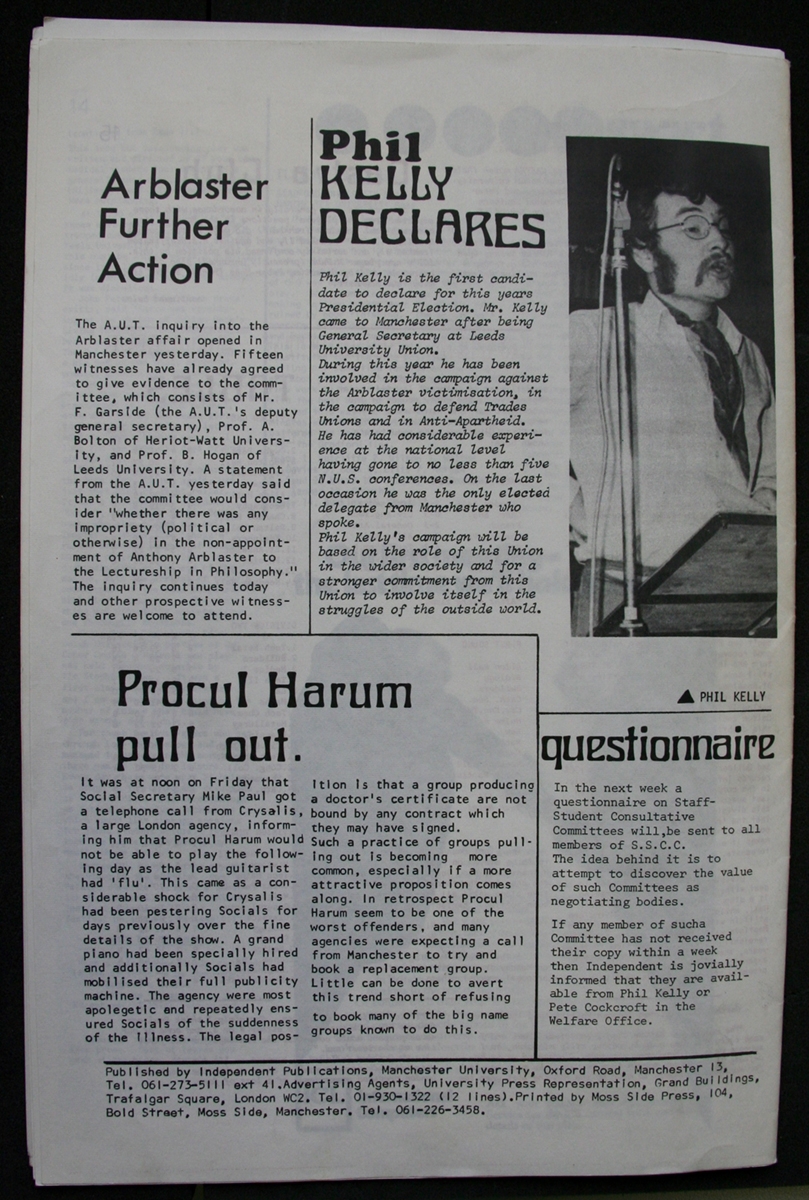 Taken from the Manchester Independent Newspaper, written and edited by University of Manchester students. With thanks to James Peters at the University of Manchester Archives and Ben Ward at The University of Manchester Students' Union.