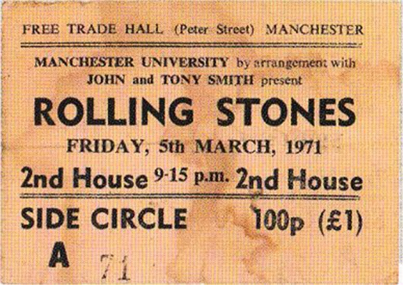 The Rolling Stones did two performances at Free Trade Hall on 5th March 1971, promoted by the Students' Union.