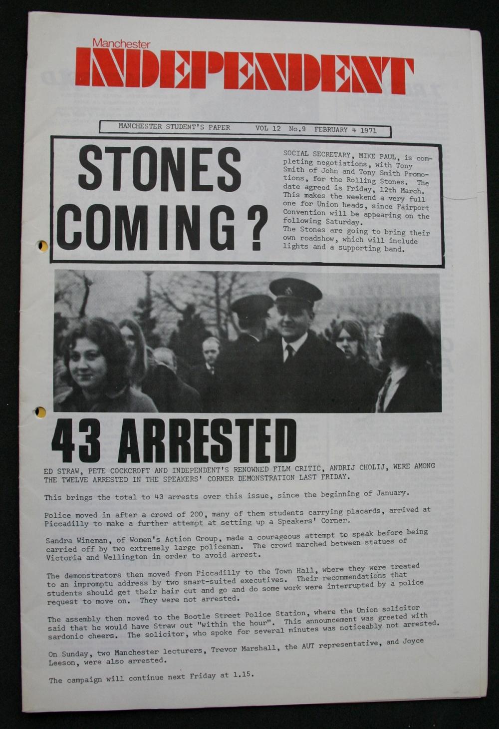 Taken from the Manchester Independent Newspaper, written and edited by University of Manchester students. With thanks to James Peters at the University of Manchester Archives and Ben Ward at The University of Manchester Students' Union.