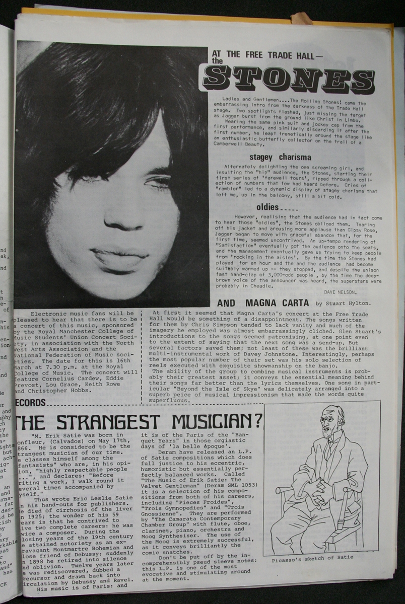 Review of the Rolling Stones show at the Free Trade Hall. They did two performances due to popularity. The shows were promoted by the Students' Union.