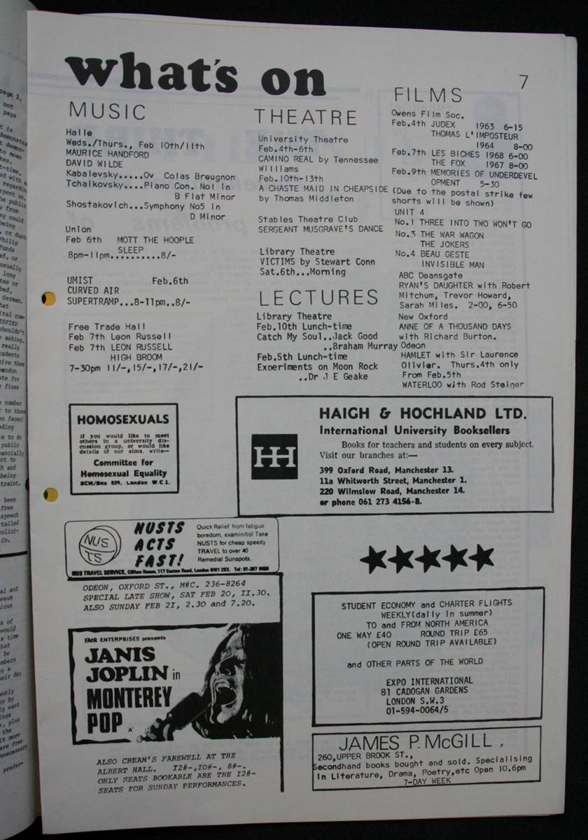 Taken from the Manchester Independent Newspaper, written and edited by University of Manchester students. With thanks to James Peters at the University of Manchester Archives and Ben Ward at The University of Manchester Students' Union.