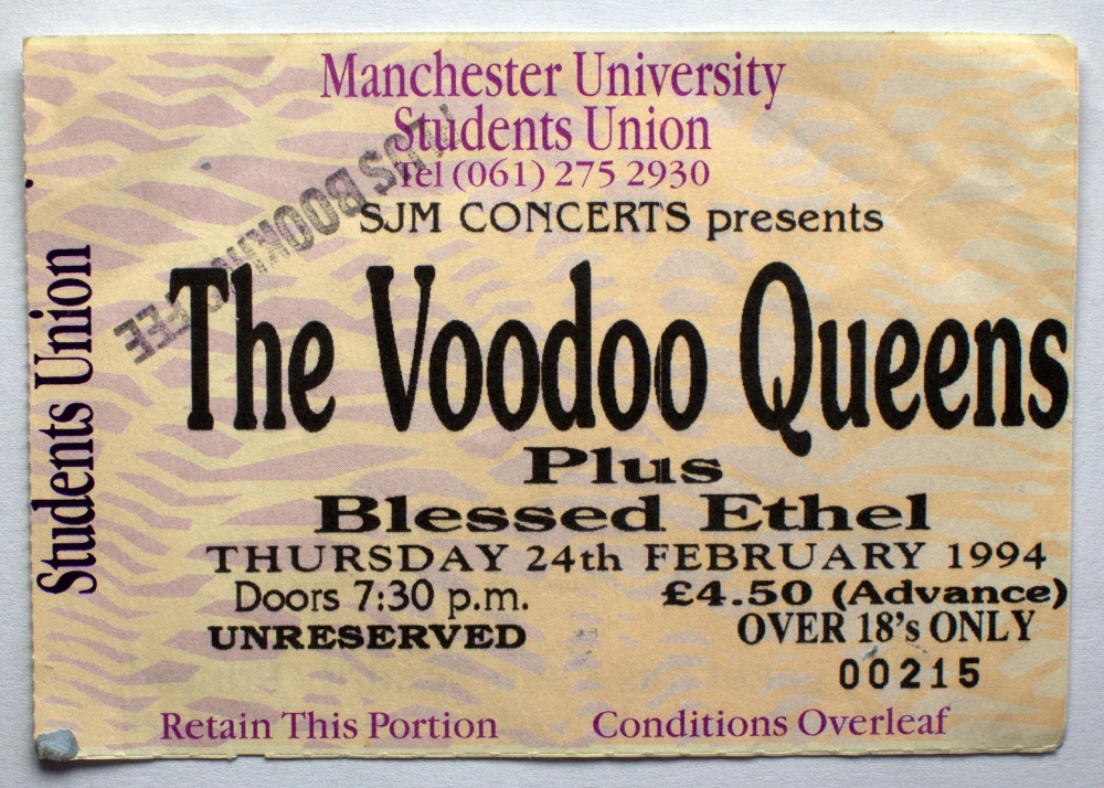 The Voodoo Queens were an Asian fronted all female band often associated with the UK Riot Grrrl scene and this show in the Hop and Grape was the first time I witnessed the Riot Grrrl movement in action.