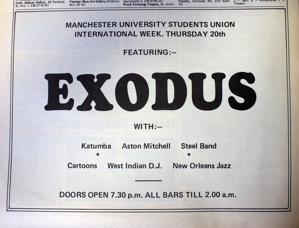 Manchester's Exodus were the headline act of this event that was part of the Union's 1980 International Student week program.
