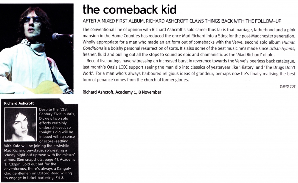 Two mini features on Richard Ashcroft ahead of his gig at Academy 1.