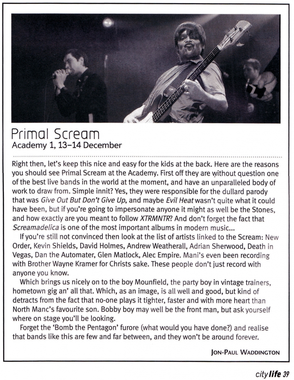 Primal Scream mini feature ahead of their gig at Academy 1.