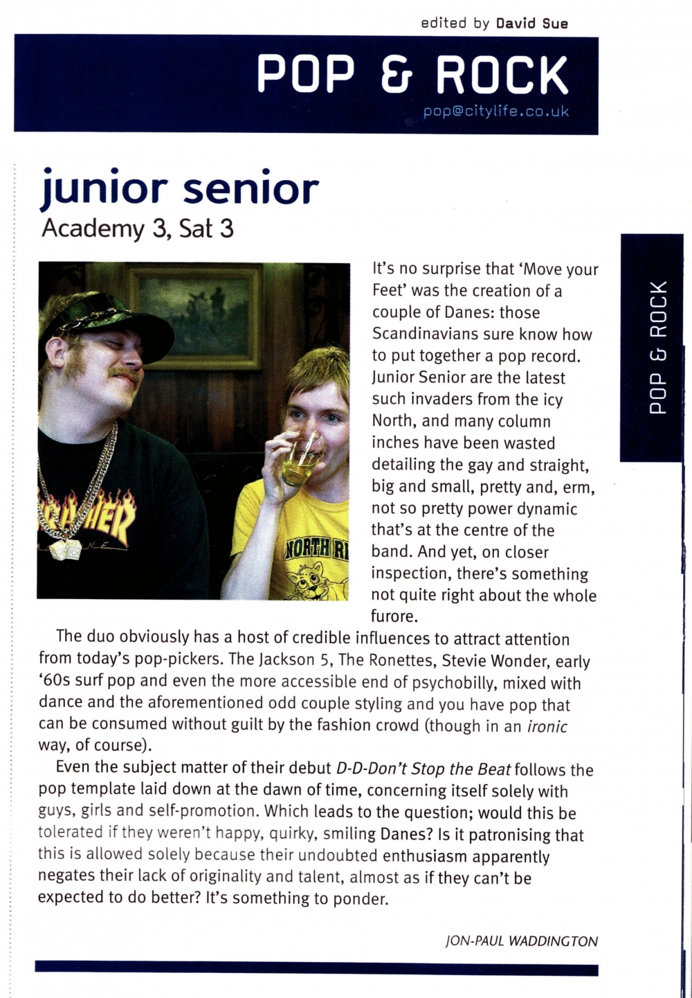 Feature on Junior Senior before their gig at Academy 3.