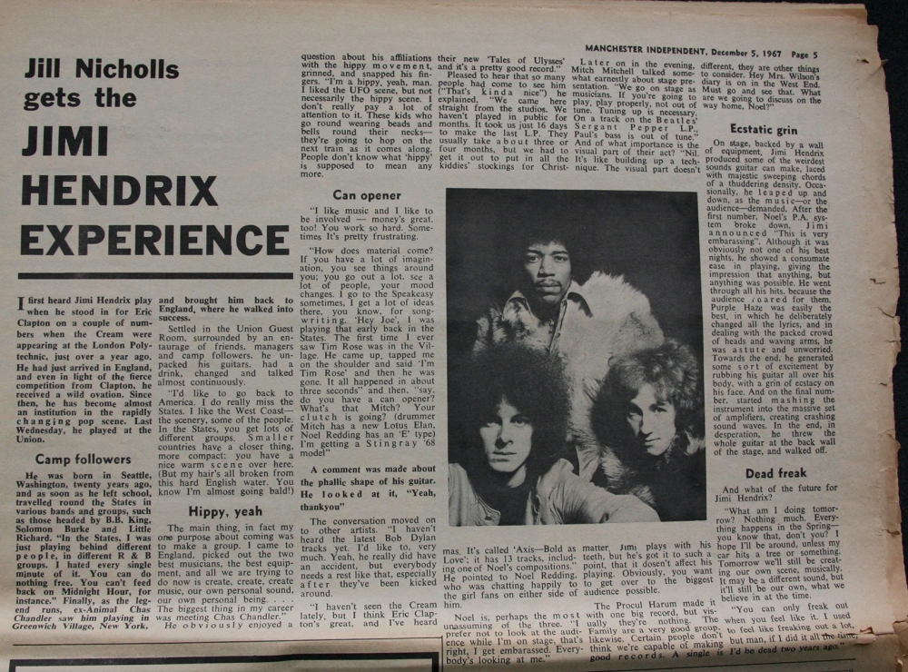 During the interview Jimi talks about his decision to come to England, the burgeoning hippy movement and his inspiration for songwriting. The article also gives a review of the evening's show.