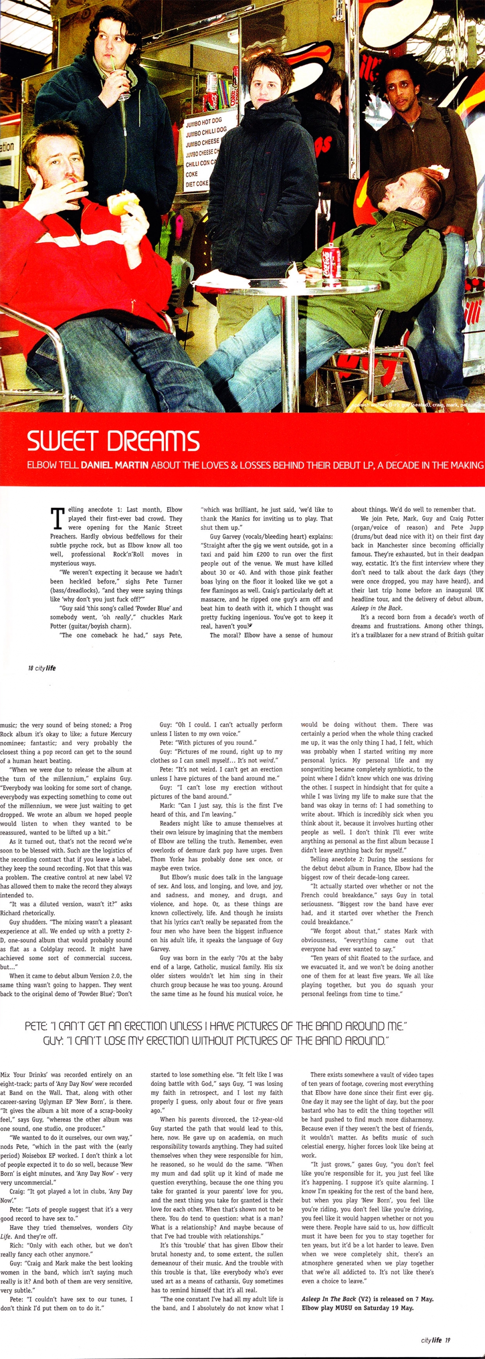 Interview with Elbow on the cusp of success just before the release of debut album Asleep in the Back and their celebrated gig at the University a few weeks later. Asleep in the Back was shortlisted for the Mercury Prize later in the year.
