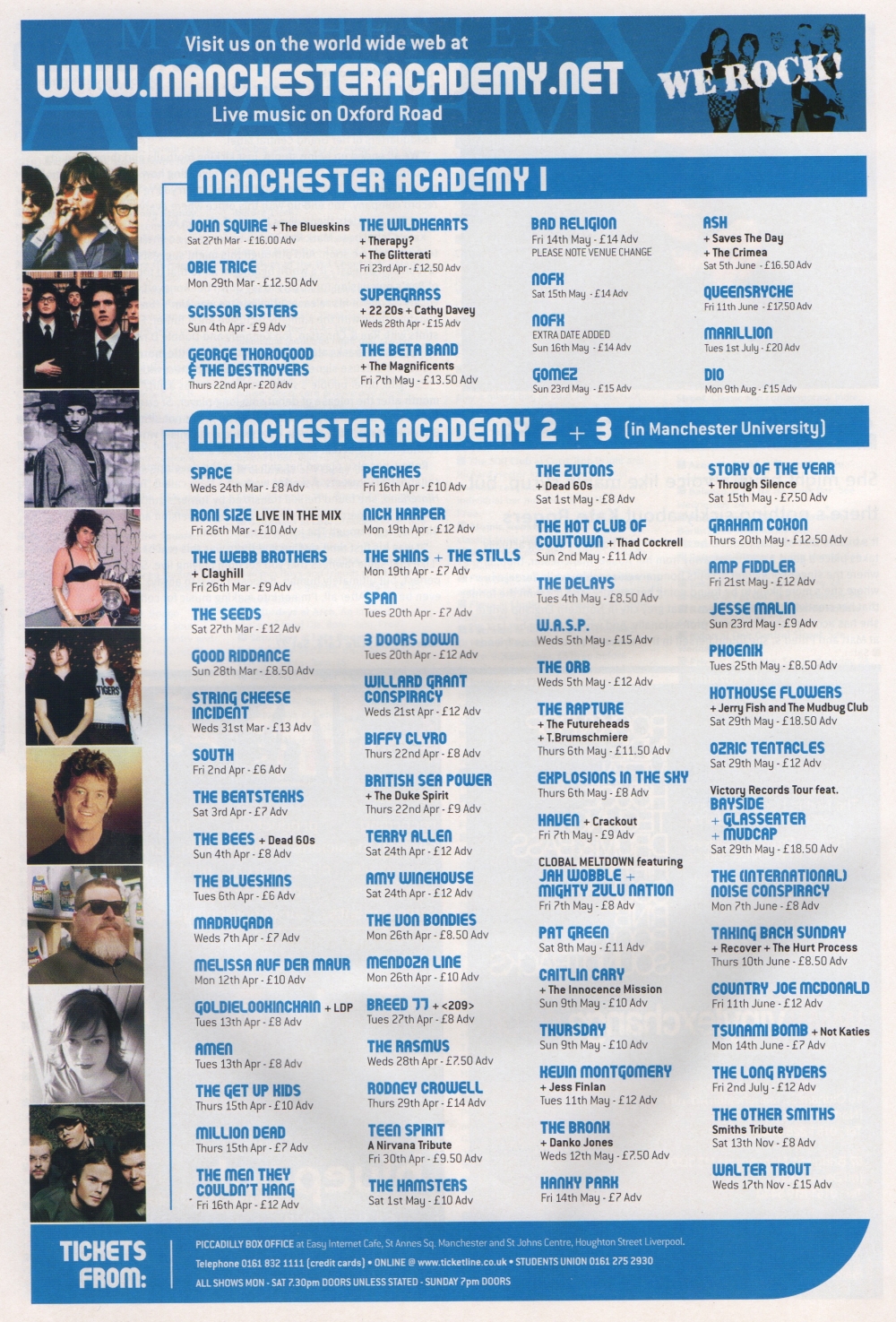 Gig ad covering Mar - Nov 2004 at the Academy venues