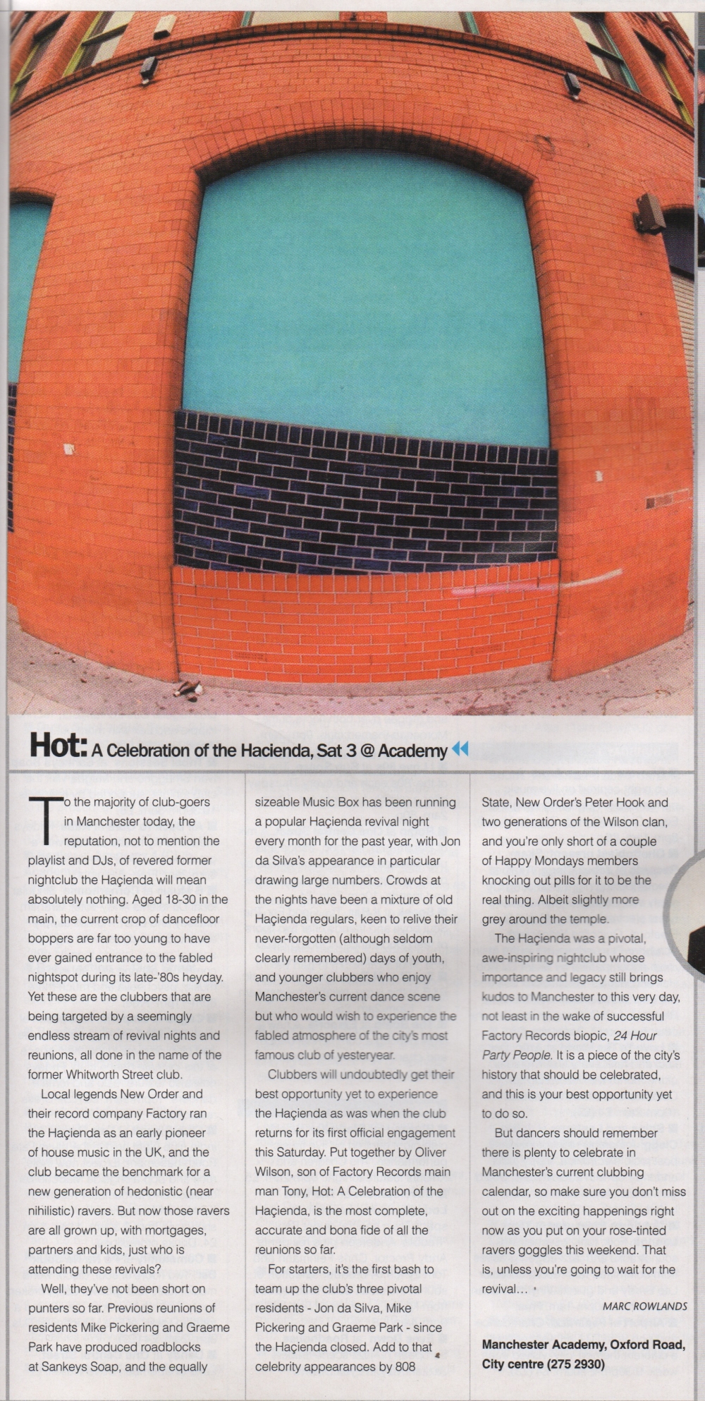 A Hacienda reunion night at the Academy promoted by Tony Wilson's son Oliver in 2005. Sterling line-up.