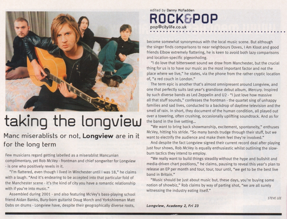 Article promoting Longview's gig at Academy 2