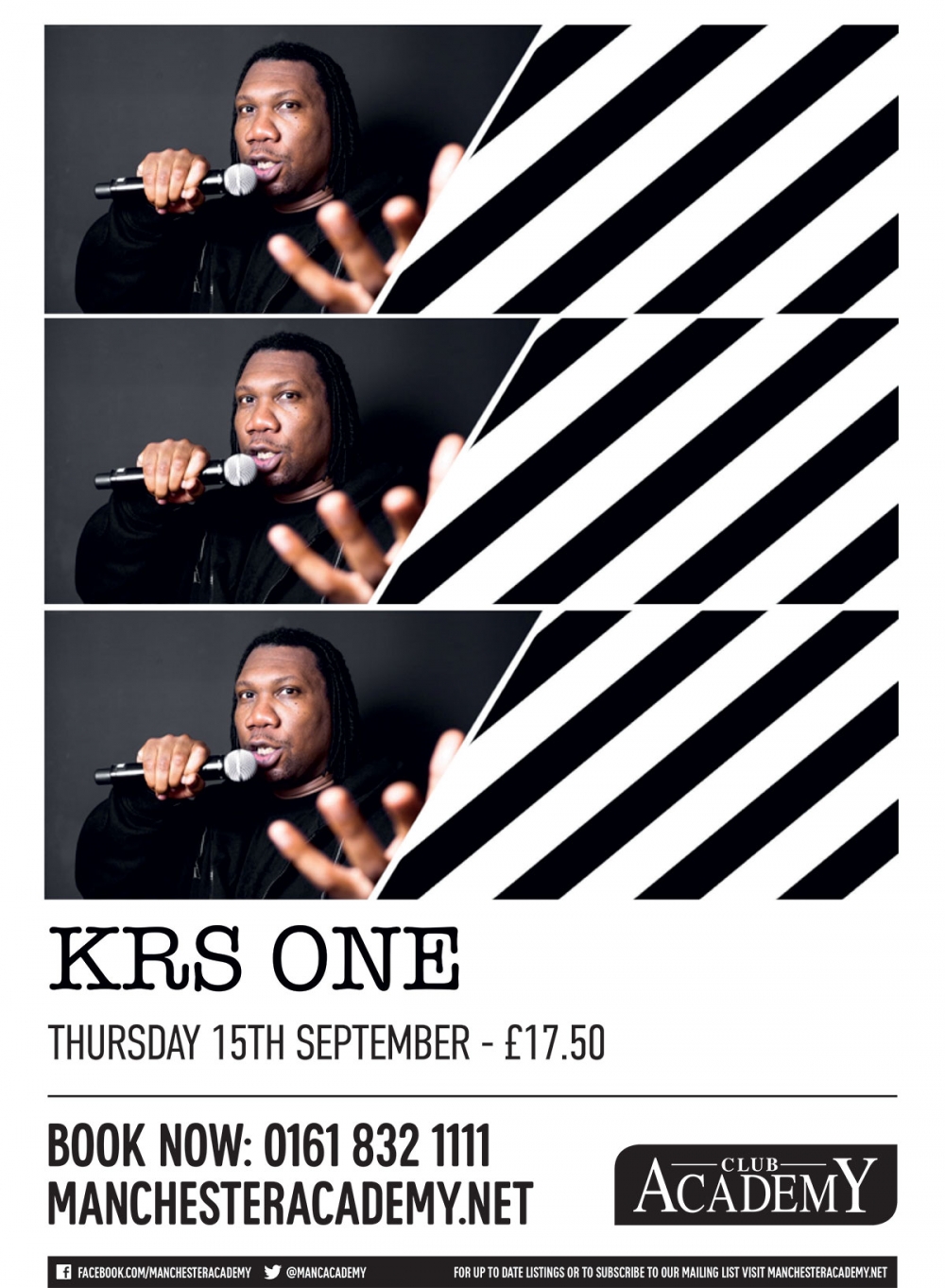 Advert for a show at Club Academy by American hip-hop MC, producer, philosopher and activist KRS one.