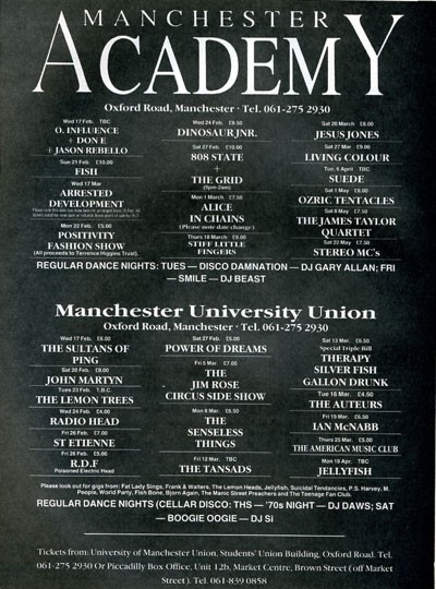 Mmm - a mixed bag. I was at Dinosaur Jr and American Music Club - both good gigs, maybe Suede if it was Academy 2. Will post the tickets up. Wish I'd seen The Auteurs.