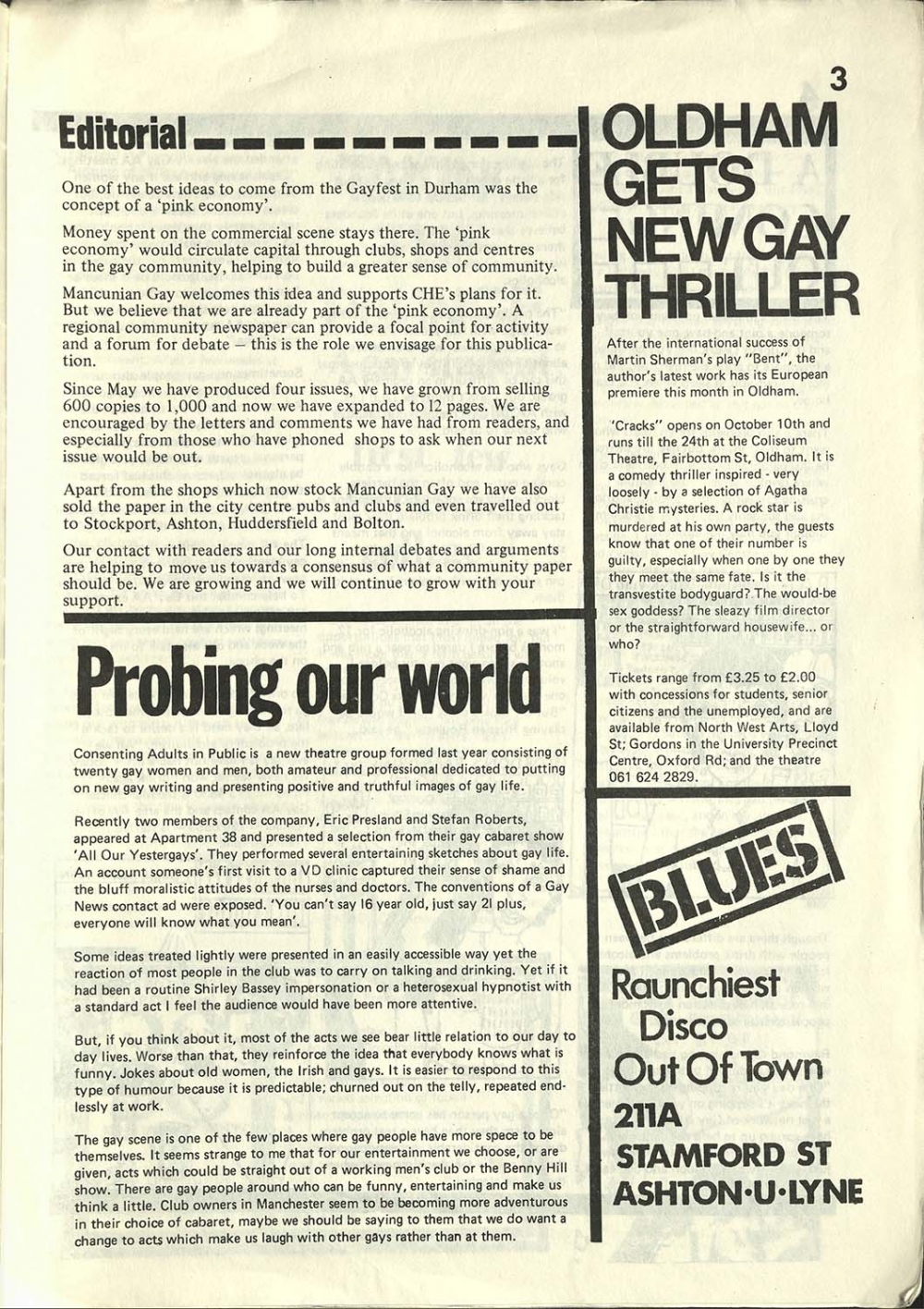 The Mancunian Gay was a great platform for open discussions on social attitudes within the gay scene.