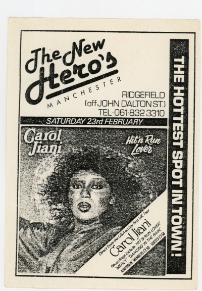 Advert for Carol Jiani at New Hero's 1985