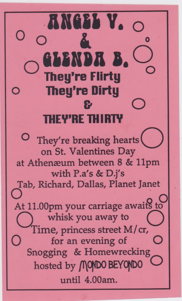 Flyer Angel Valentine's performance on Valentine's Day. Taken from the Kate O'Donnell archives.