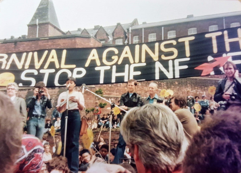 Following her brave stance against National Front leader Martin Webster, Ramila Patel, aged just 21, addressed the rally at Strangeways that preceded the Northern Carnival. Other speakers included Colin Barnett, secretary of the North West TUC and Frank Allaun MP. The rally was held at Strangeways because the prison had a reputation for employing warders who were members of the National Front.