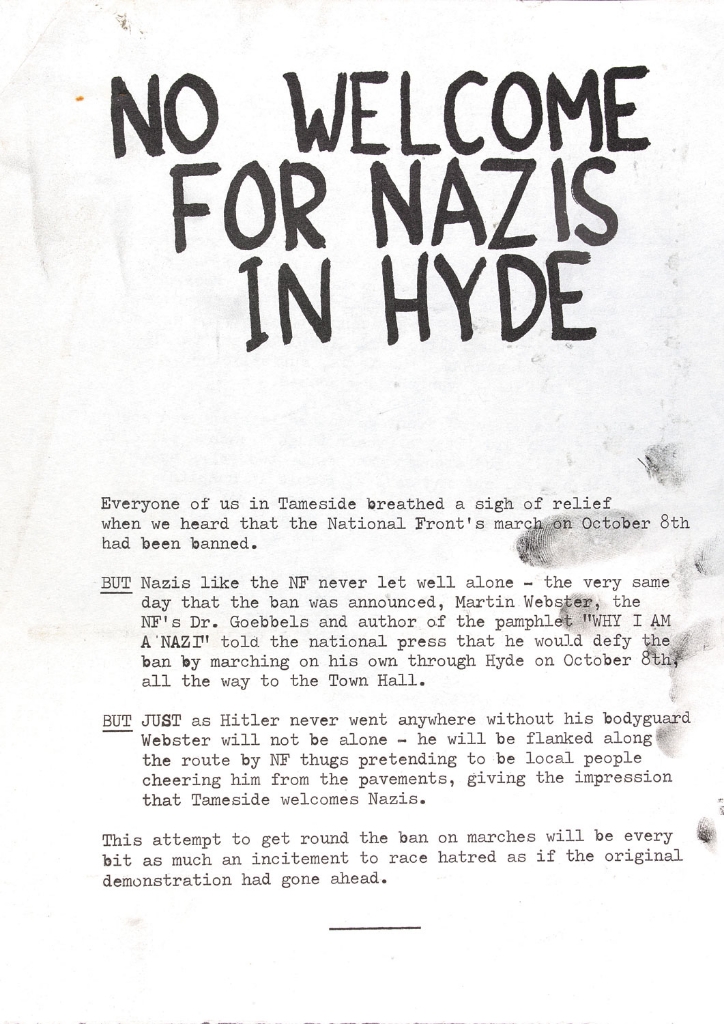 Leaflet produced by Tameside Anti-Fascist Committee , 1977.