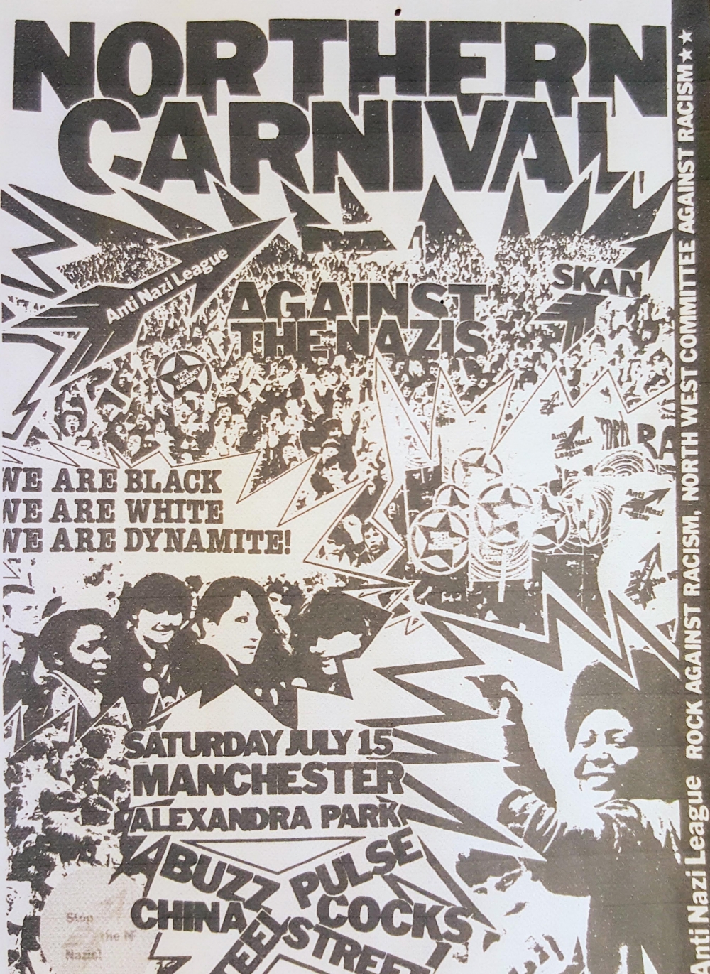 Co-organised by Geoff Brown of the Anti-Nazi League (ANL) and Bernie Wilcox of Rock Against Racism (RAR), the Carnival featured incendiary live performances by pop-punk superstars Buzzcocks and Steel Pulse, the UK's leading reggae band of the period. Support came from Moss Side reggae band Exodus (later X-O-Dus) and China Street from Lancaster, who had released a single on EMI called ?Rock Against Racism?.