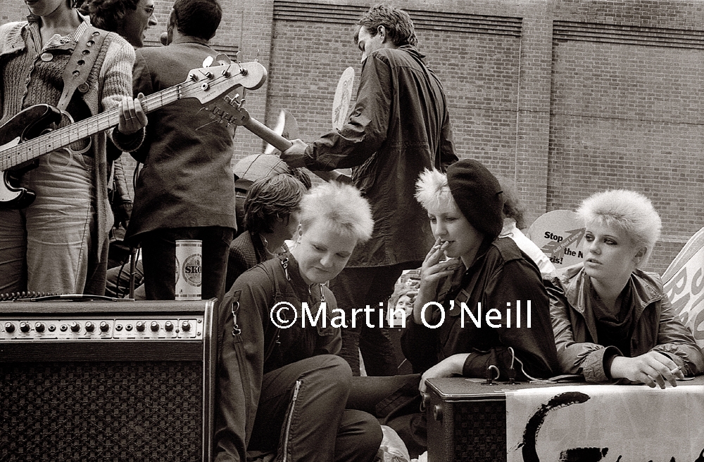 A great shot of some peroxide punks soaking up the atmosphere on the back of a flat bed truck at the rally before the Northern Carnival Against the Nazis, 1978, featured in the following online exhibition: