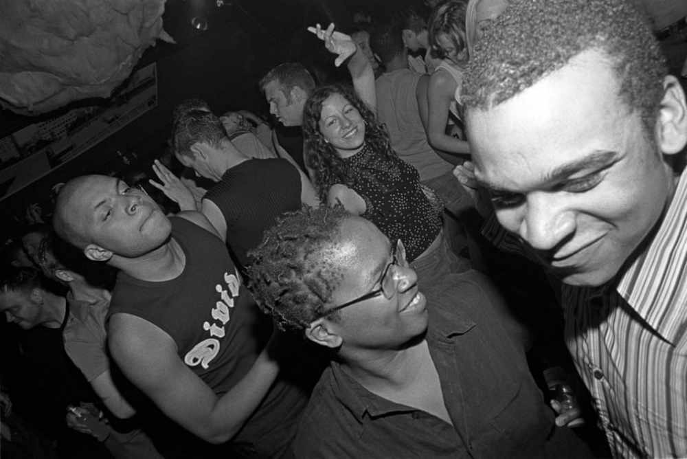 In the centre of this shot you can see DJ Claud Cunningham cutting some rug at Paradise Factory. Claud started alt-queer club Black Angel in 1999 with the aim of providing a safe hangout for black, Asian and minority ethnic women in Manchester.