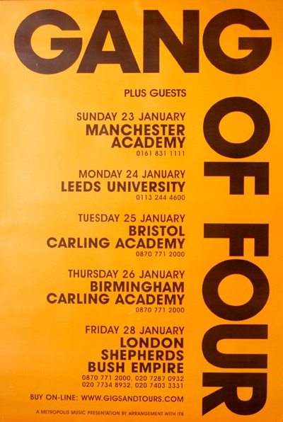 The tour poster for the reformed Gang Of Four tour of 2005, which included a show at the University in the main hall (Academy 2).