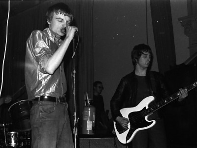 Picture of Mark Smith and Tony Friel of The Fall at The Squat in Oct 77 at a Rock Against Racism gig.