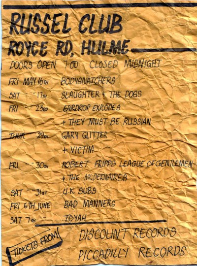 Always had a fantastic time at the Russell, so much so I didn't know that I'd seen some acts there untill people told me years later I was there with 'em !