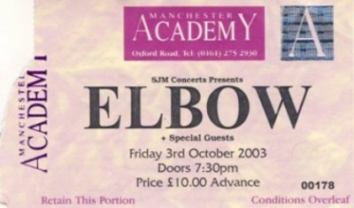 Ticket for Bury band Elbow at the Academy,in 2003.Look where they are now.