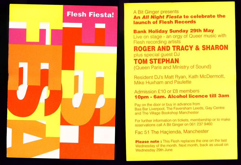 This was the launch of the ill-fated "Flesh Records", an overly confident step into the world of dance music labels that eventually caused the end of "A Bit Ginger" productions. But luckily we have nearly forgotten the imaginative chorus of Tracey and Sharon's (aka Tom Stephan, aka Superchumbo) "Filthy Hetro" and the camp excesses of Roger looking for "Mr Right" (cover of the Eleanor Mills / Parky classic)!