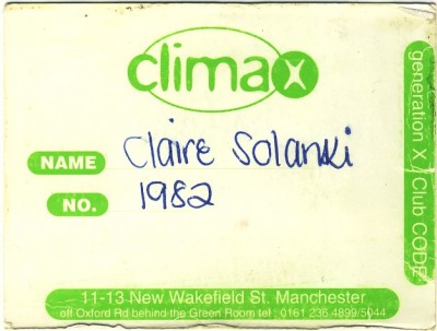 Climax membership card. This was a women only night that ran in Generation X on New Wakefield Street. I think the place is Font now. I think it also ran at the Paradise Factory occasionally.